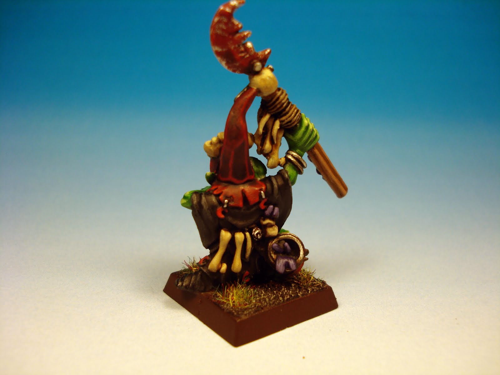 Na pierwszy ogień idzie gobliński szaman - Mściwy Wtykacz. Bardzo lubię ten model, duże lepiej mi odpowiada taki wizerunek nocnych goblinów. Nie przepadam za tym zmienionym przy okazji Bitwy o Czarną Grań.